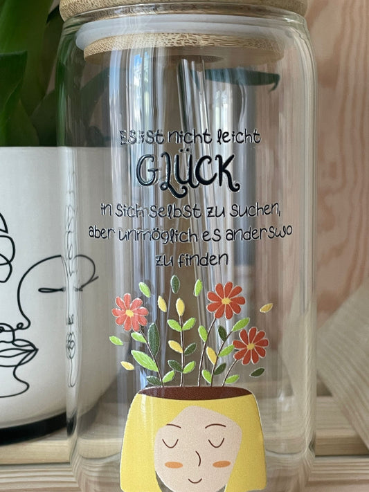 Trinkglas groß: Blumen mit Spruch