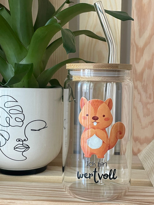 Trinkglas: Eichhörnchen mit Affirmationsspruch